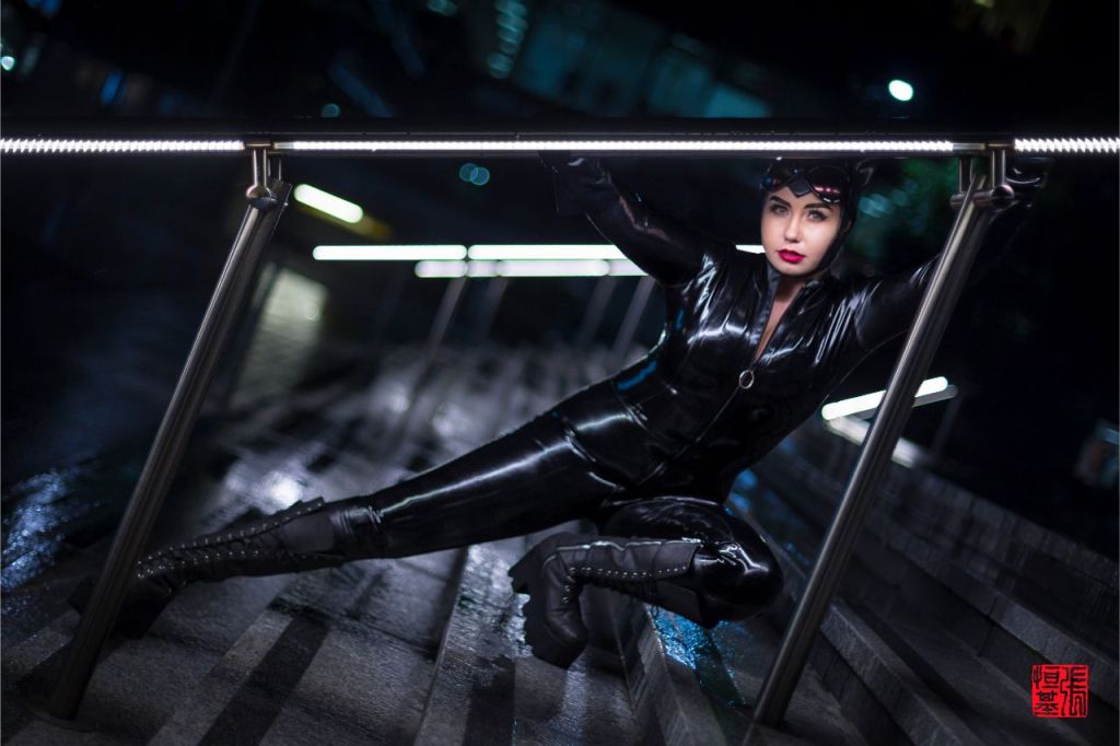 I have always seen these lights on these stairs in Central London and always wanted to find something to shoot in this area. When Tequila Kyle suggested she wanted to shoot her latex inspired Catwoman from the Batman comic series, I knew this would be a good match.