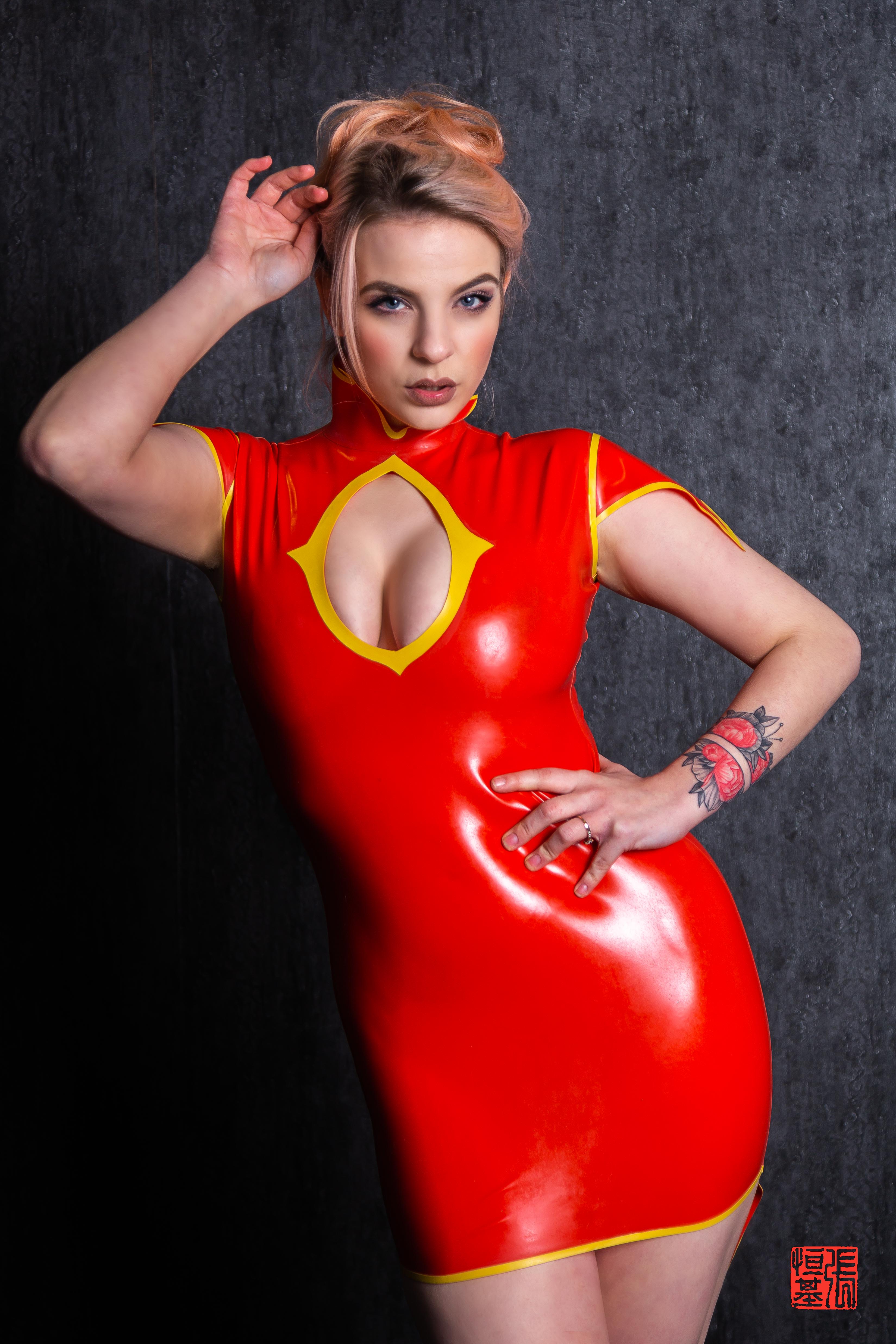 Sexy Latex Red Dress worn by Sophia
