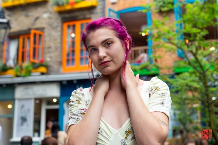 Taken at Seven Dials with all the colours in the courtyard area. Just works so well with my friend’s dress and hair.