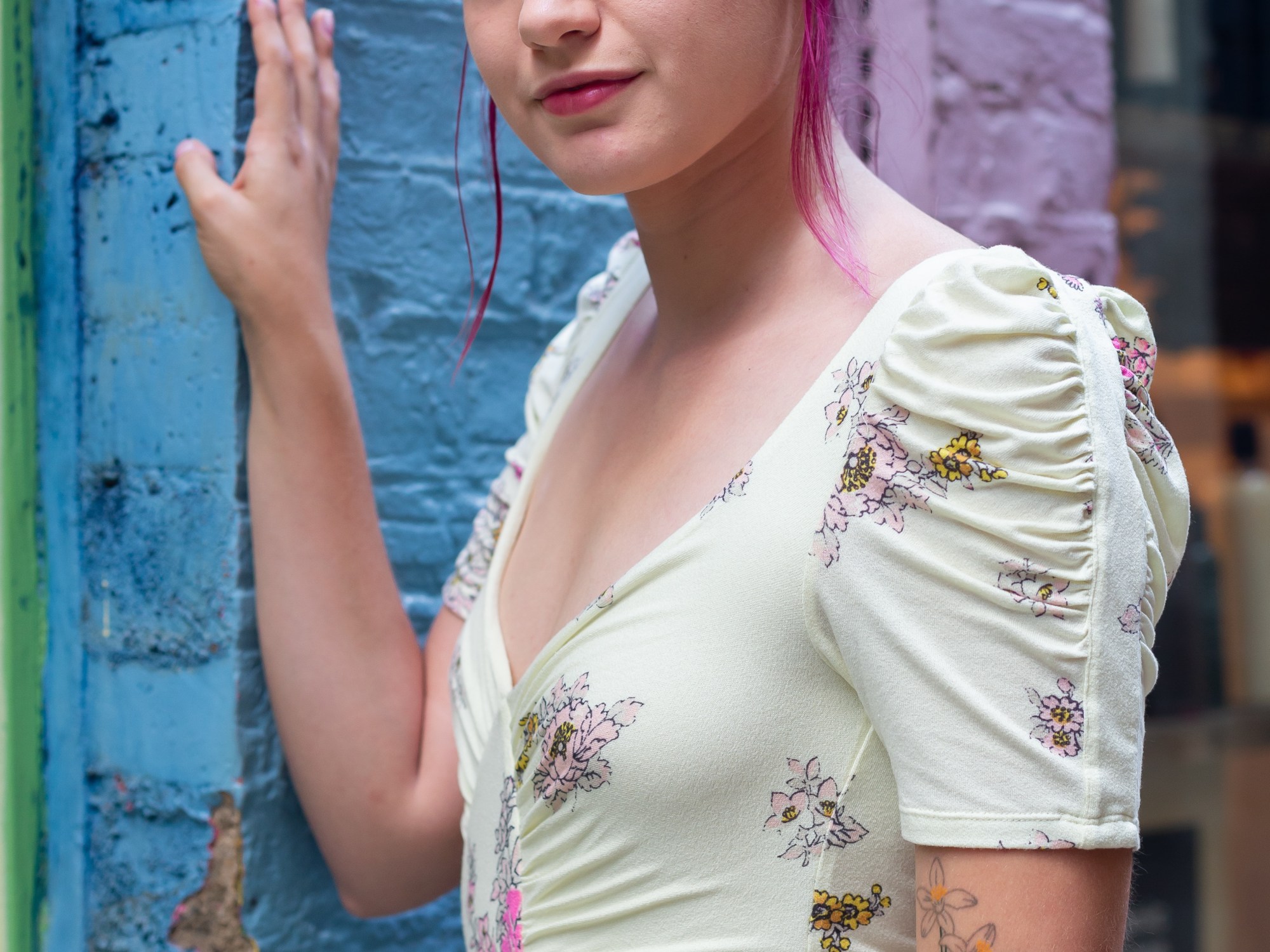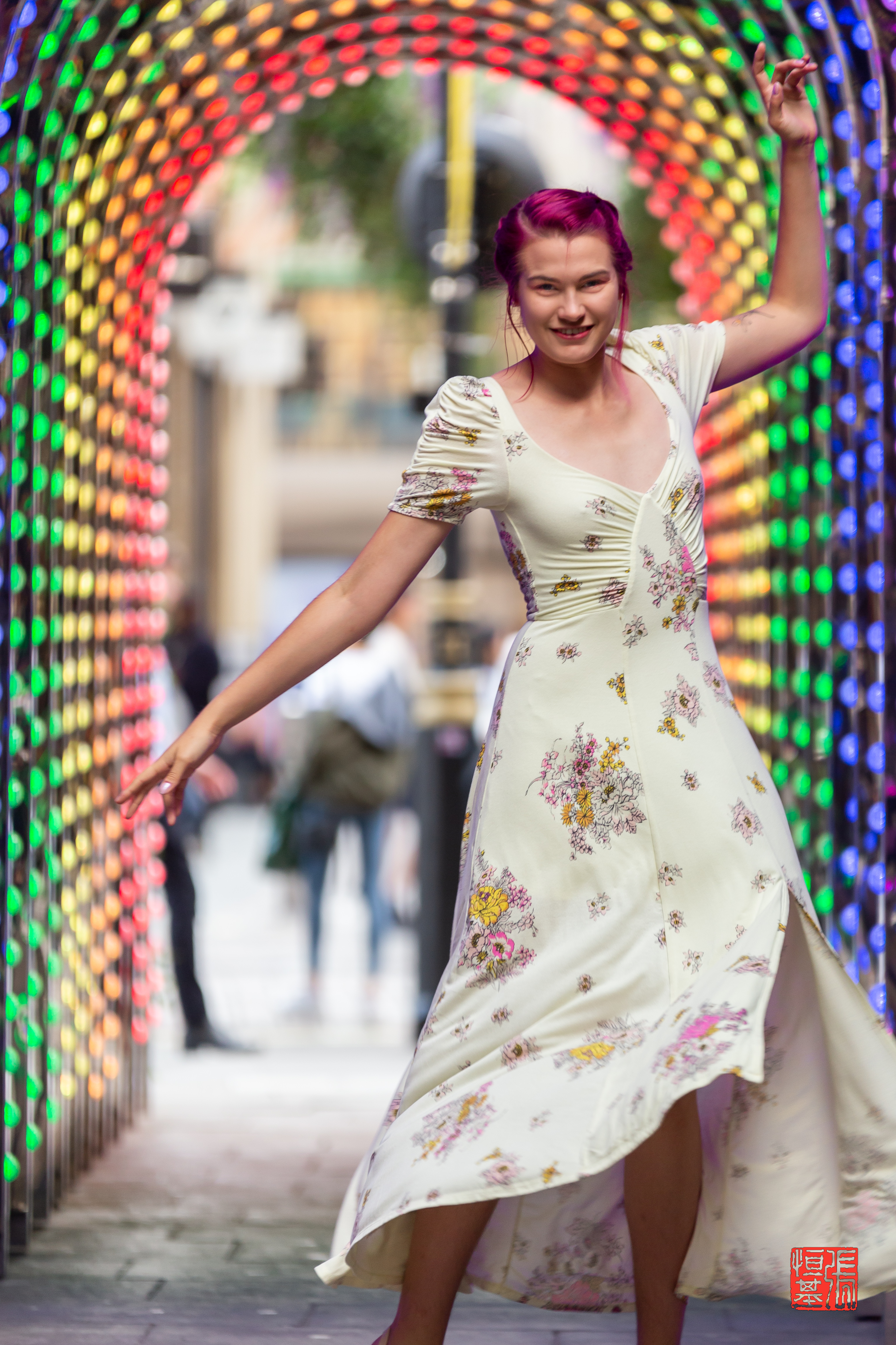 Taken at Seven Dials with all the colours in the courtyard area. Just works so well with my friend’s dress and hair.