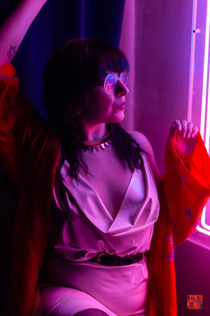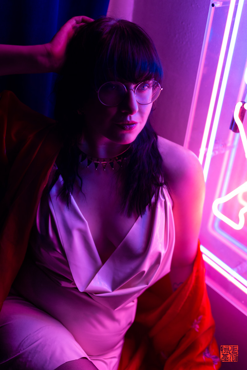 I just love getting the reflection of the neon lights in the glasses, it just adds extra details to the photo.