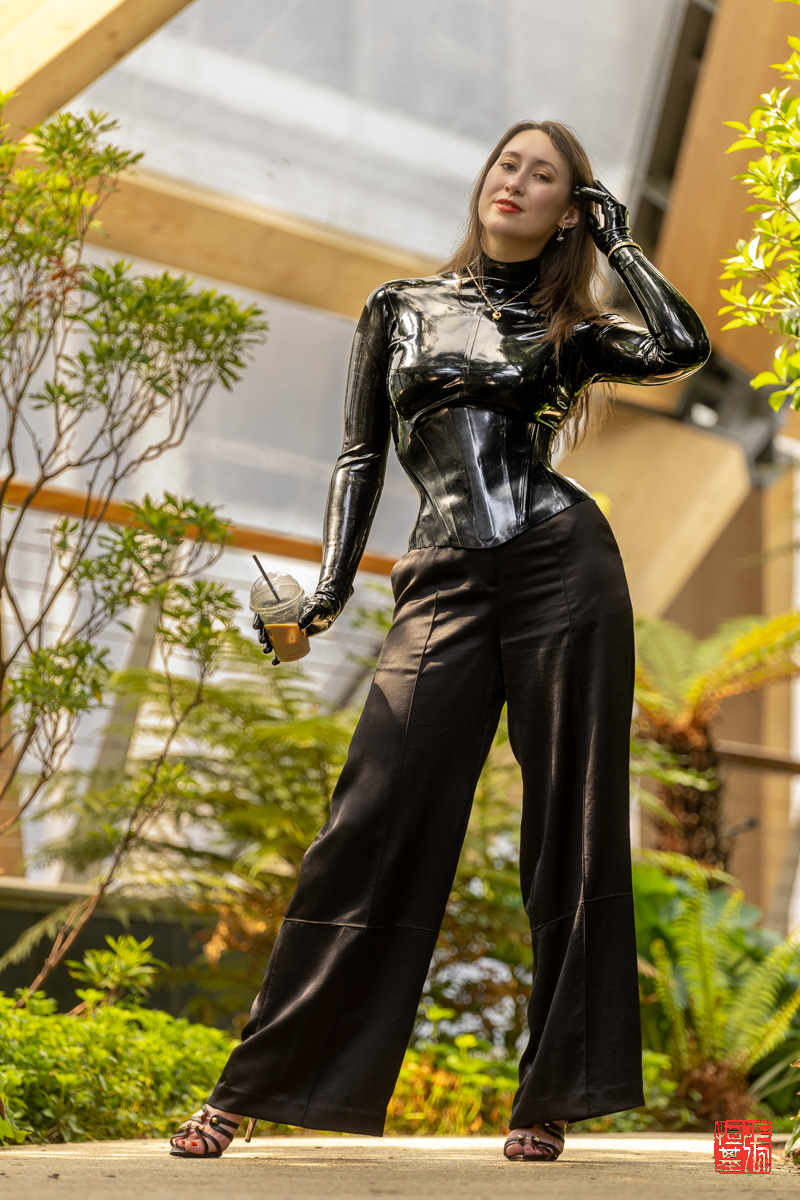 I knew of this place in London where I liked to shoot and knew I hadn’t shot there in a while, so when I floated the idea to LatexNChill, she was intrigued by how I would blend the latex with the green surroundings and just loved the outcome of these photos. The natural sunlight shining on the latex and the reflection just added so much to the photo.