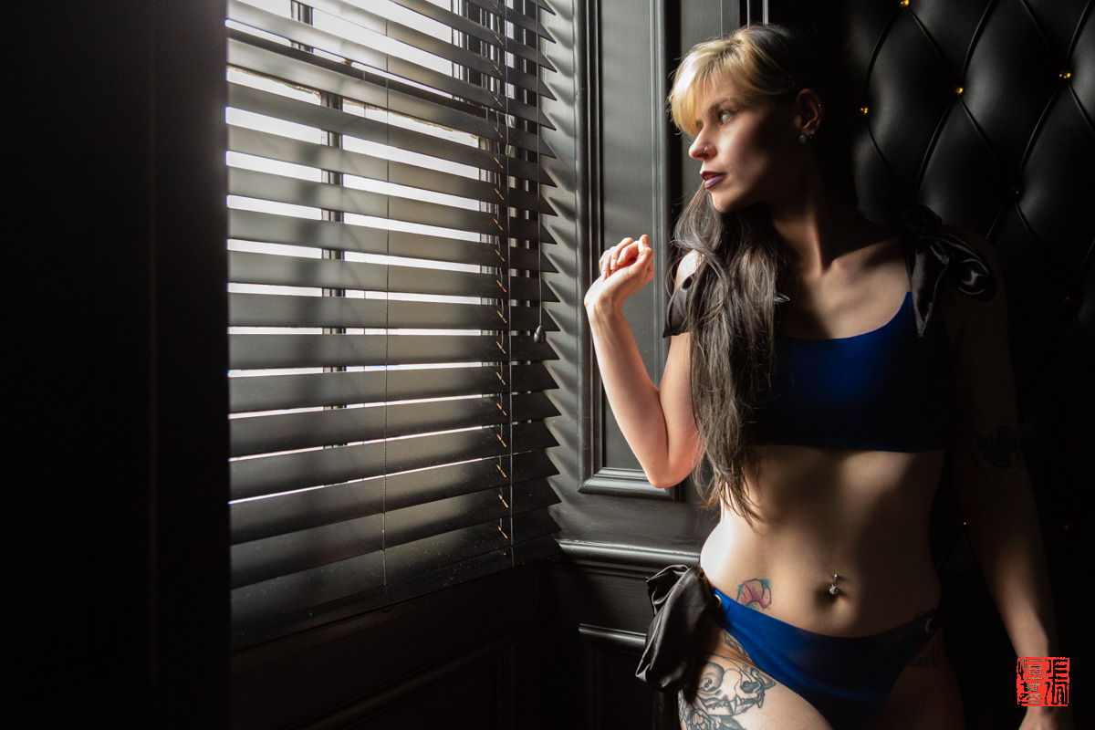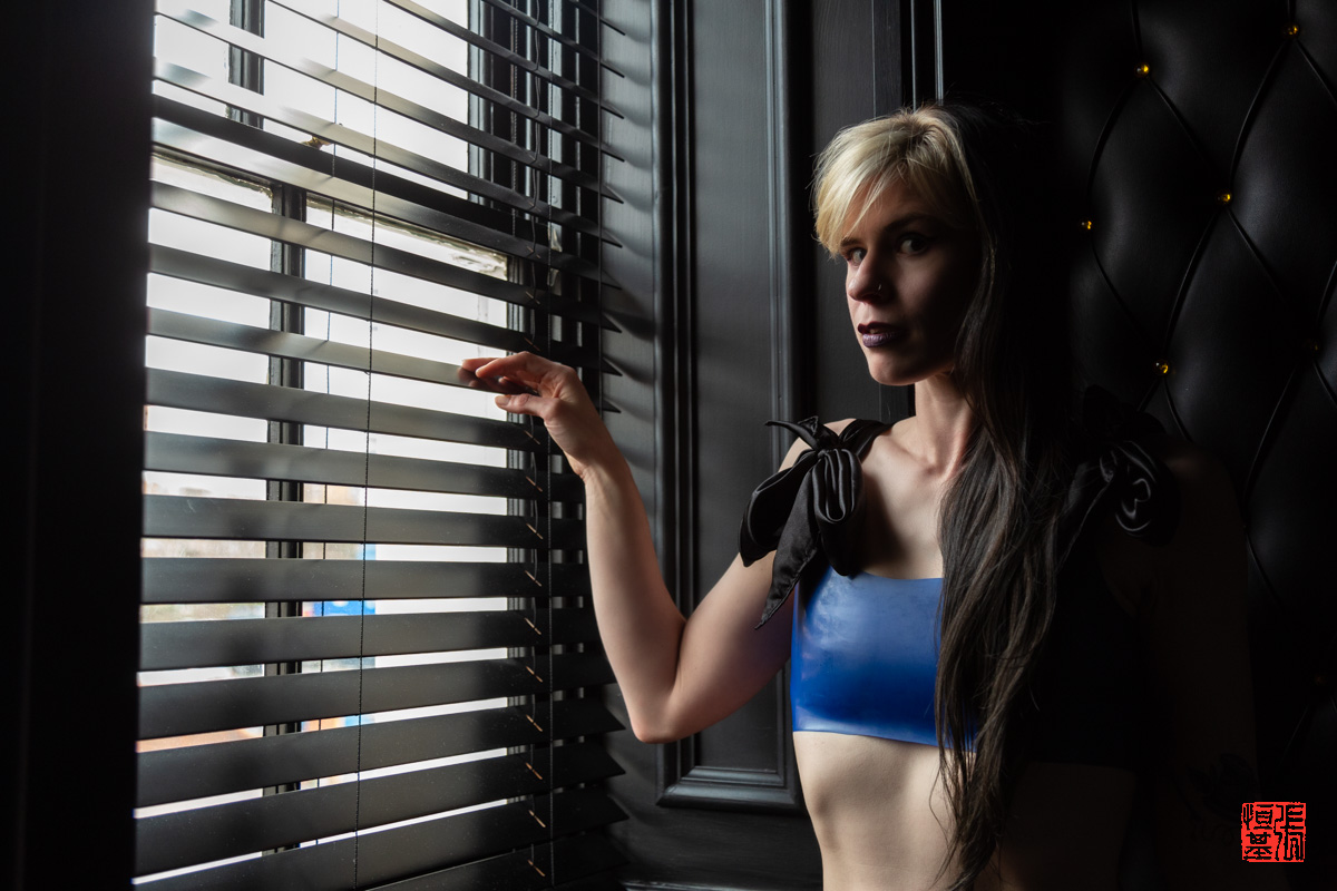Seeing Candyylocks peeking out through the blind, I instantly knew how I wanted to take these photos, while she was wearing the latex designer Queen Troll Art bikini outfit.