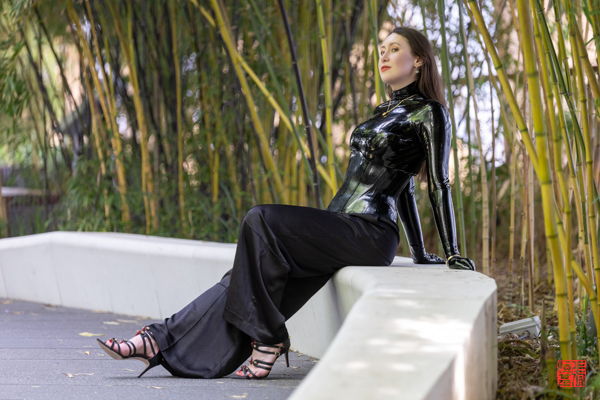 I knew of this place in London where I liked to shoot and knew I hadn’t shot there in a while, so when I floated the idea to LatexNChill, she was intrigued by how I would blend the latex with the green surroundings and just loved the outcome of these photos. The natural sunlight shining on the latex and the reflection just added so much to the photo.