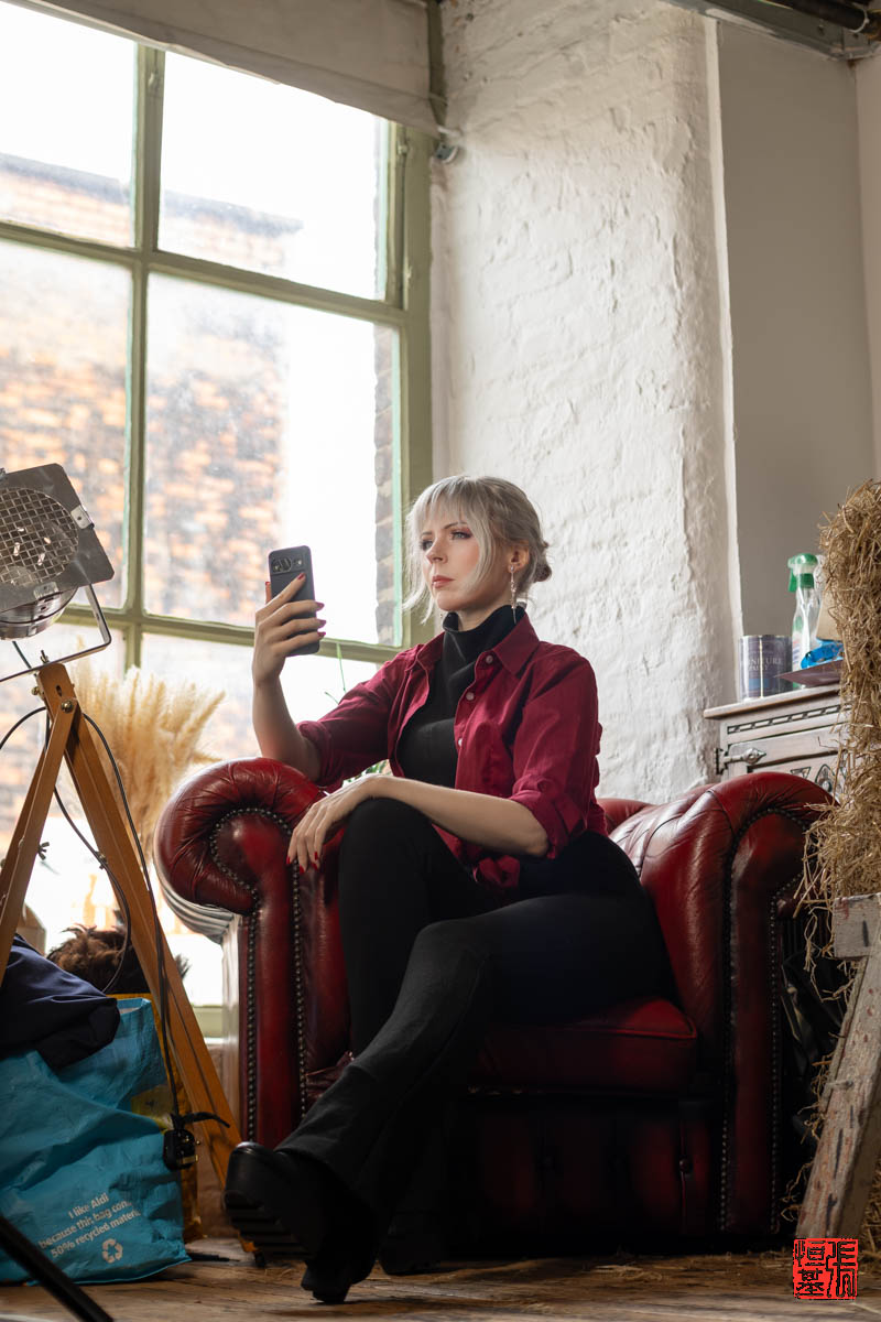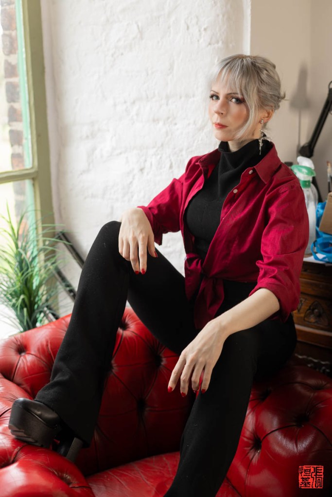 The setting was simple: a single leather armchair positioned in front of a window. The natural light streaming in created a soft, almost painterly quality. My friend wore a rich maroon blouse, the deep colour adding a touch of warmth and sophistication against the backdrop of the window.