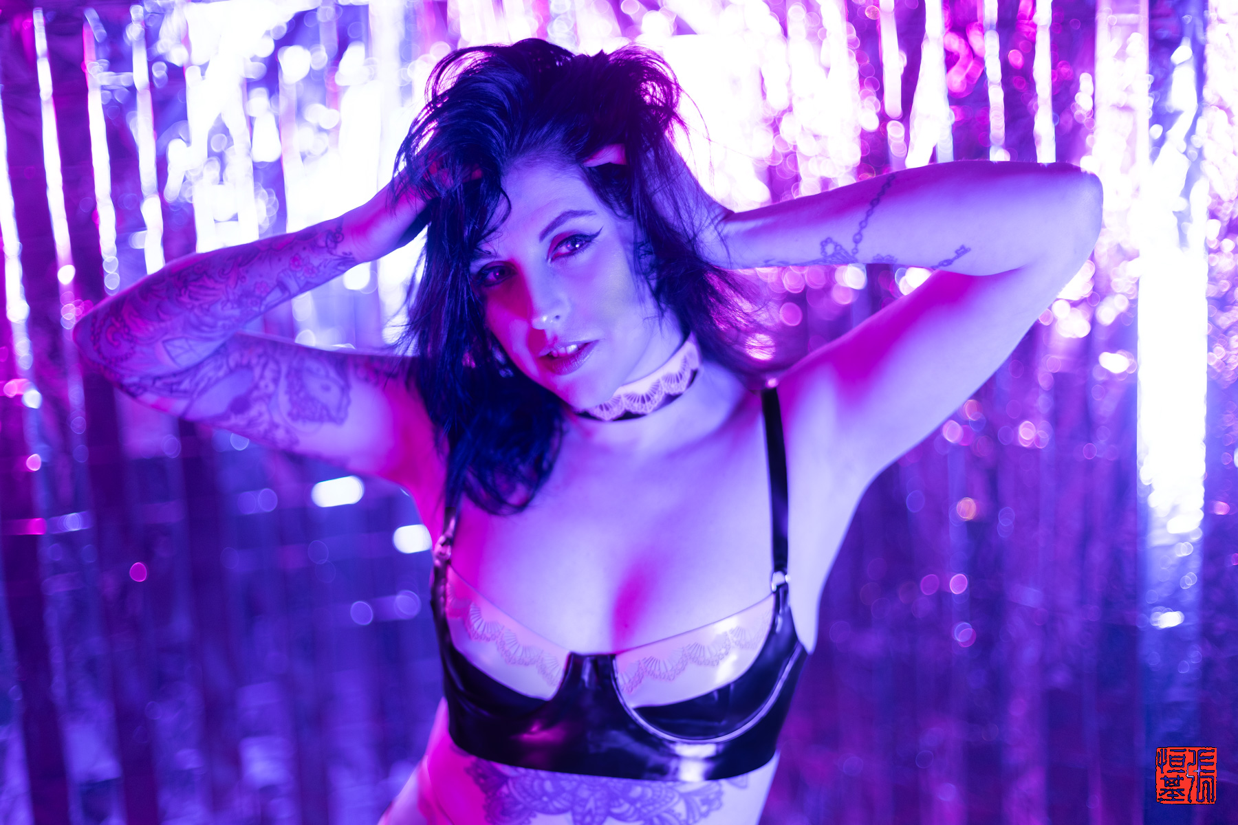 So, picture this: studio vibes, purple and blue lights swirling, and the incredible SJ Jinxx rocking some seriously cool latex. We were about to create some magic, and honestly, the energy in the room was just buzzing.