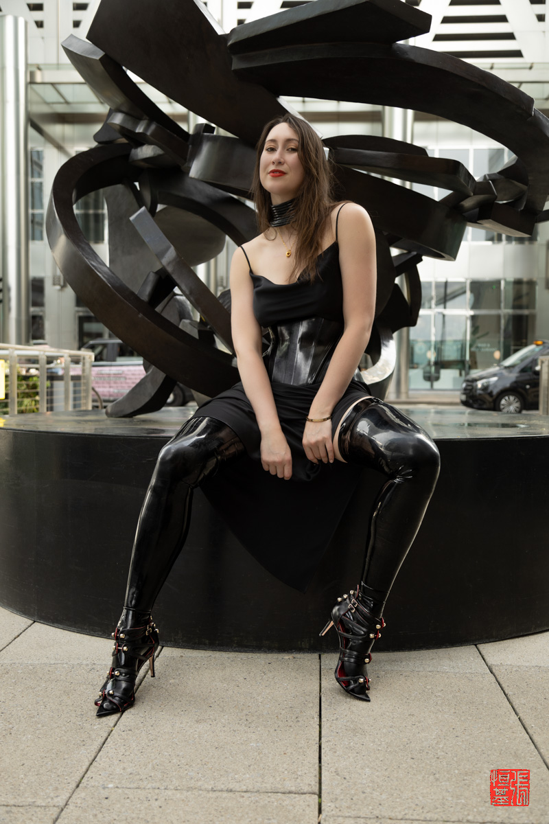 The moment LatexNChill stepped onto London’s busy streets, her presence was electrifying. Dressed in mesmerizing shiny black latex, she radiated confidence and sophistication that perfectly echoed the city’s unique character. The visual contrast between her sleek attire and the bustling crowds was absolutely captivating.