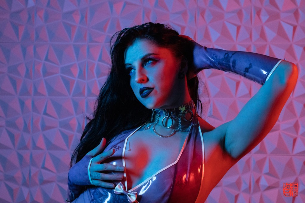 To add a unique touch, I’d recently invested in some latex pieces specifically for studio shoots. Witnessing them come to life on SJ Jinxx in the expertly crafted lighting setup by AWOL Studios was pure magic. The combination of the outfits’ texture with the dynamic light play created a truly captivating atmosphere.