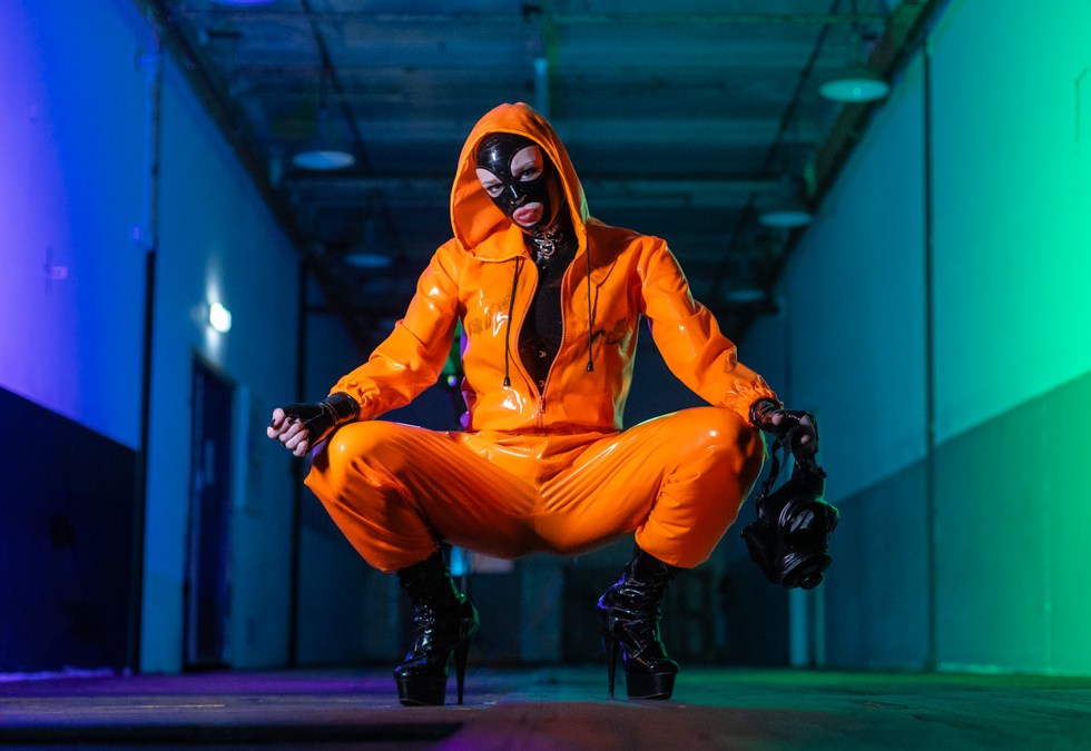 Princess Latex Rubber Doll Pops in Orange: A Colourful Collaboration at Montrose Studios
